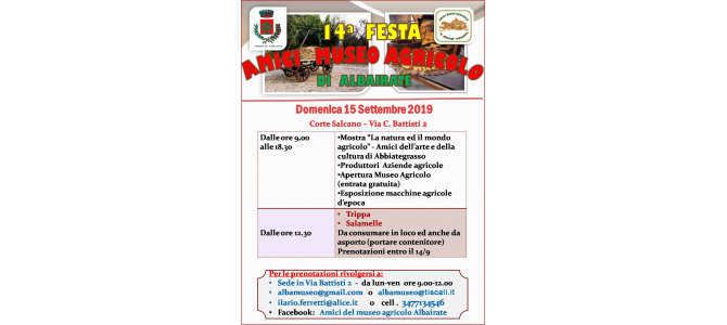 15 settembre si terrà la 14° edizione della Festa degli Amici del Museo